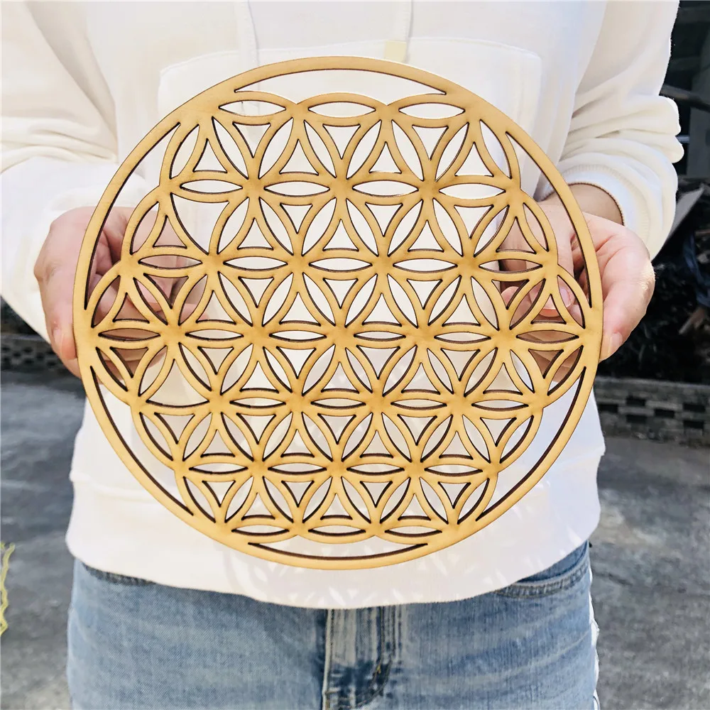 1PC Wood Wall Flower of Life Shape Art Home Decor Laser Cut Non-slip Coaster Set Wood Placemats Table Mat Round Cup Pad