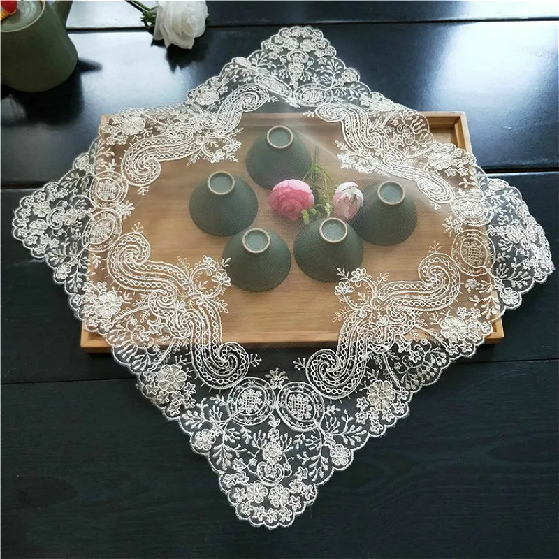Square 40cm European-style Lace Fabric Coaster Placemat Embroidered Tea Set Fruit Plate Vase Pad Cup Table Mats For Dining Mat