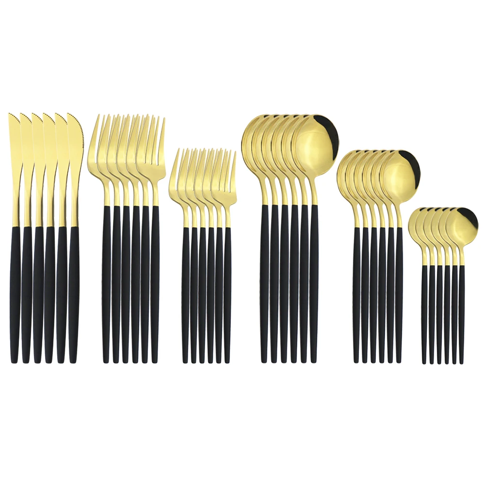 36Pcs Black Gold Cutlery Set Knives Dessert Fork Coffee Spoon Dinnerware Flatware Stainless Steel Silverware Party Tableware Set
