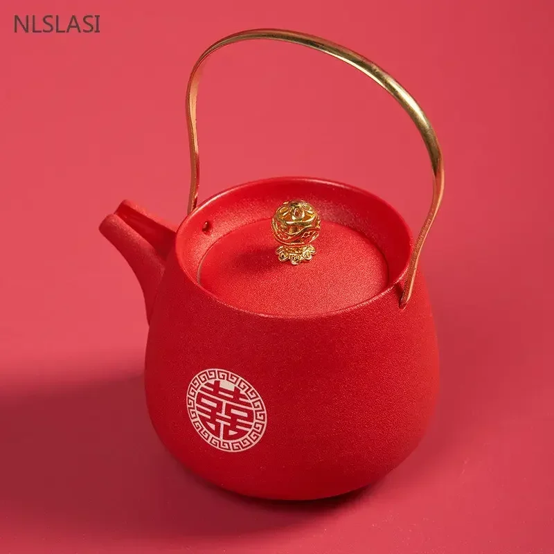 1pc Red Handmade Ceramic Teapot Chinese Tea Pot Beauty Kettle Wedding Supplies Household Tea Ceremony Customized Gifts 250ml
