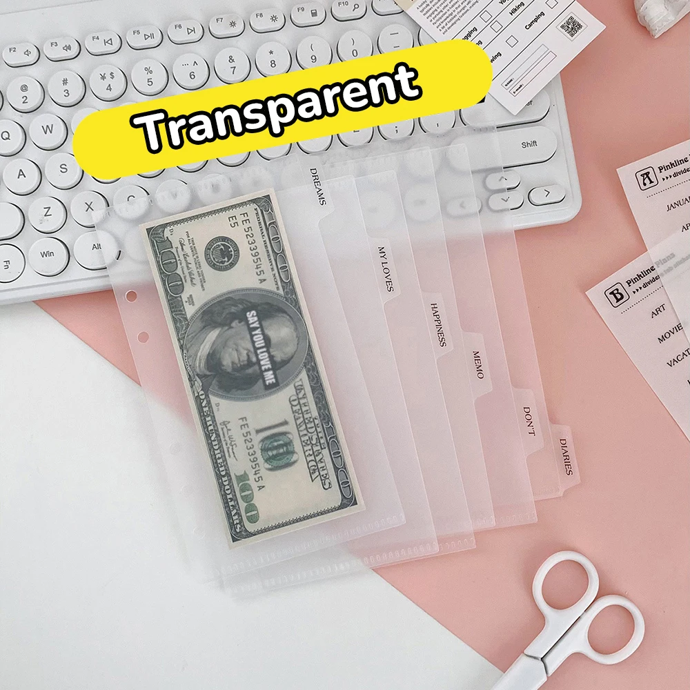 A5 A6 Transparent Paper Index Divider 6 Holes For Binder Planner Notebook Stationery Notebook Paper Divider Accessories