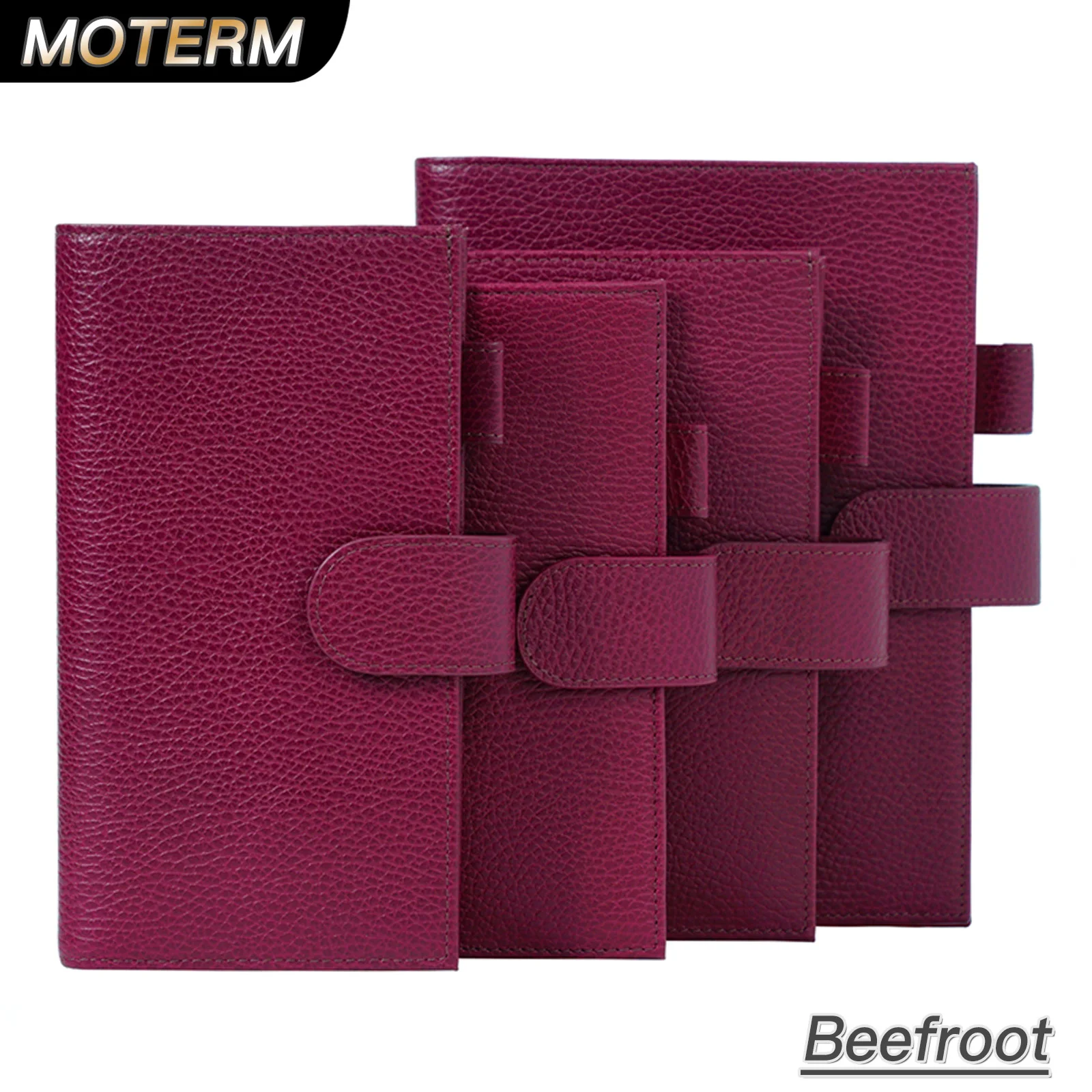 Moterm Firm Pebbled Grain Leather Beetroot Color Genuine Cowhide Planner Notebook Cover Diary Agenda Organizer Journey