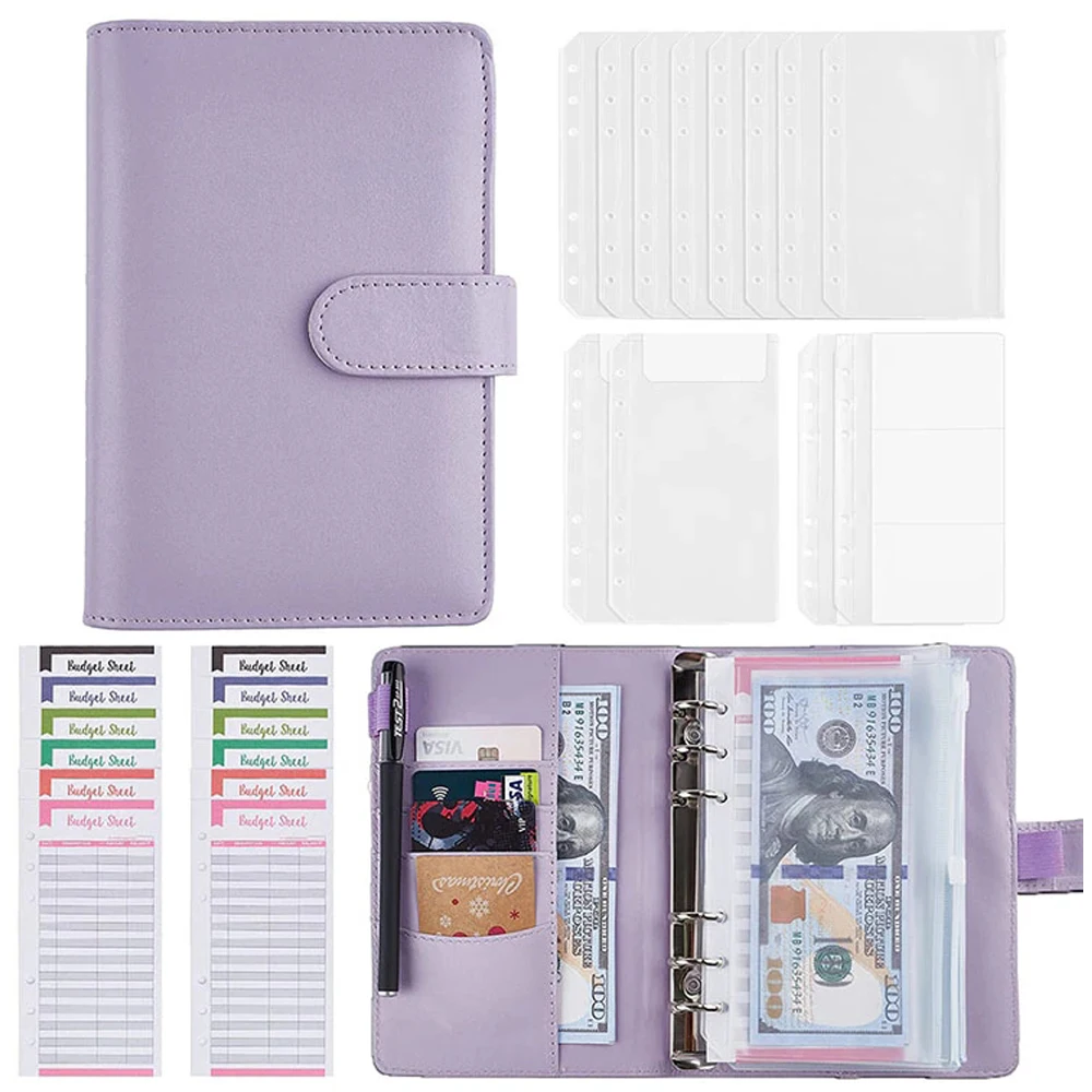 2023 A6 PU Leather Budget Binder Notebook Cash Envelopes System Set, with Binder Pockets for Money Budget Saving Bill Organizer