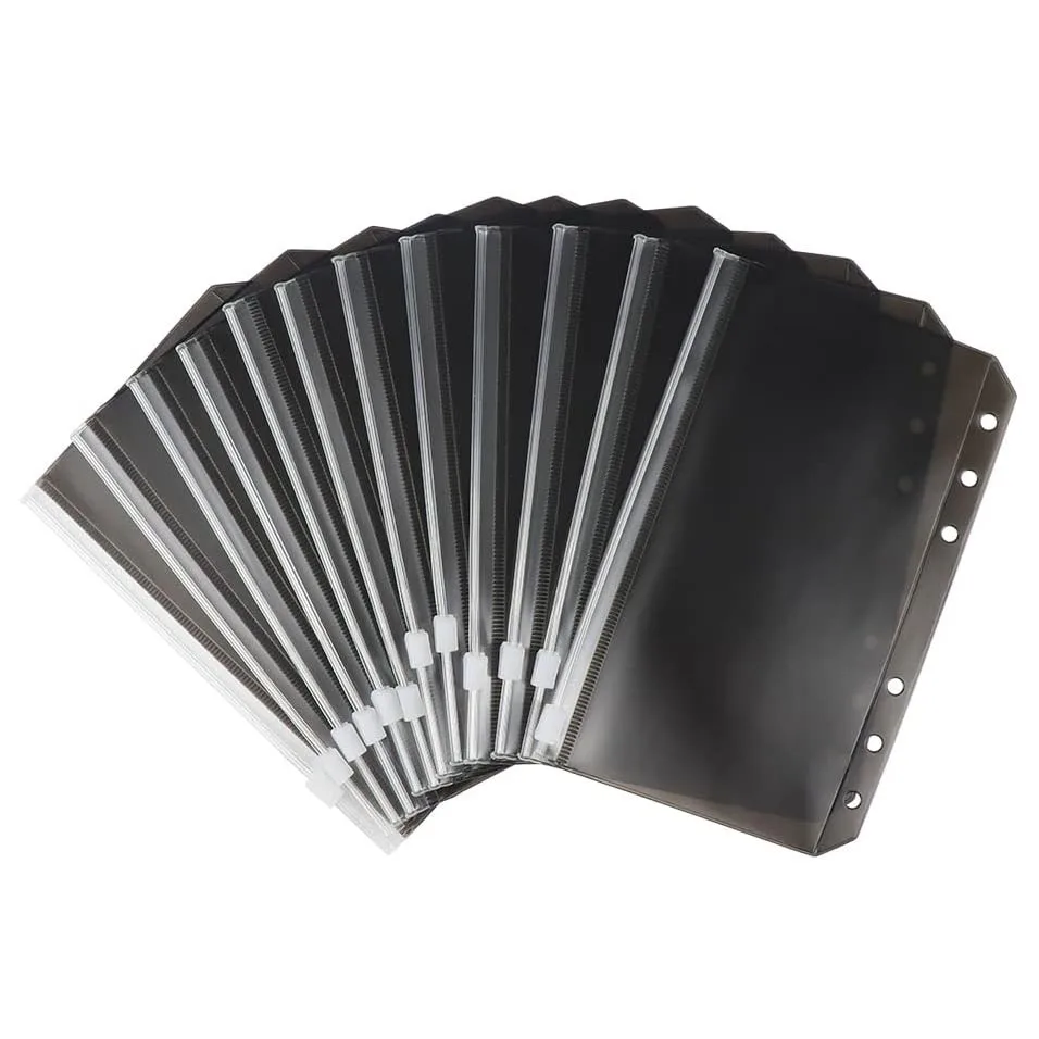 12Pcs A6 Binder Pockets Black Zipper Pouches, Translucent PVC Cash Budget Envelopes, Document Filing Bags for A6 Notebook Binder