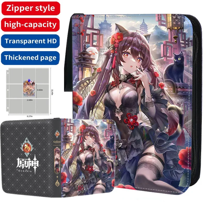 900Pcs Zipper Genshin Impact Card Binder Collection Double Pocket Anime Games Playing Trading Cards Album Holder Book Folder