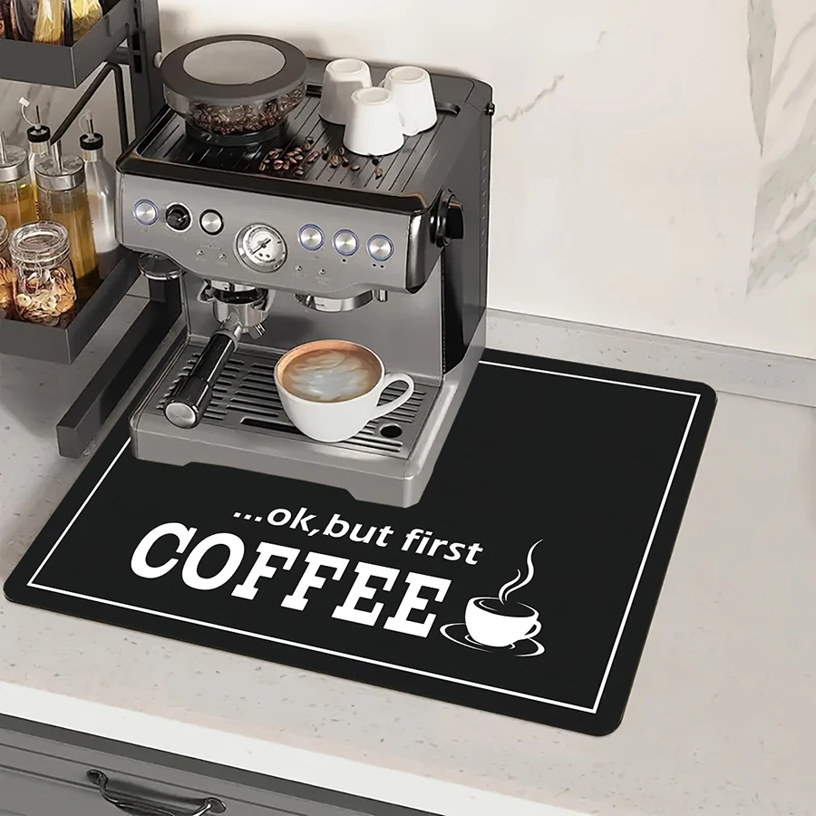 1pc black letter Coffee printed coffee machine mat modern minimalist style kitchen counter quick water absorption drying mat  Read more