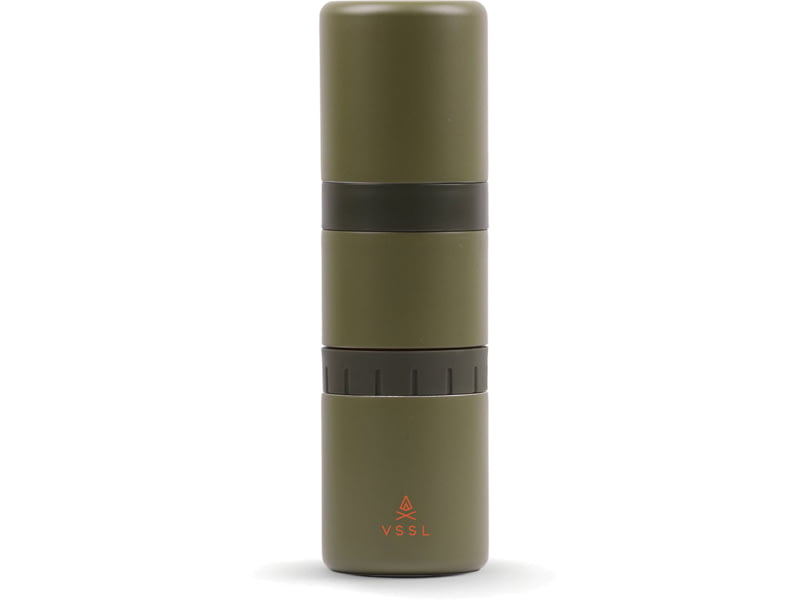 VSSL Nest Pour-Over Coffee Kit Deep Moss B144301-000. Dual threads enable the 5-piece kit to assemble into one compact unit perfect for travel overlanding and other outdoor endeavors. When disassembled the Kit delivers two 10oz mugs one splash proof...  Read more