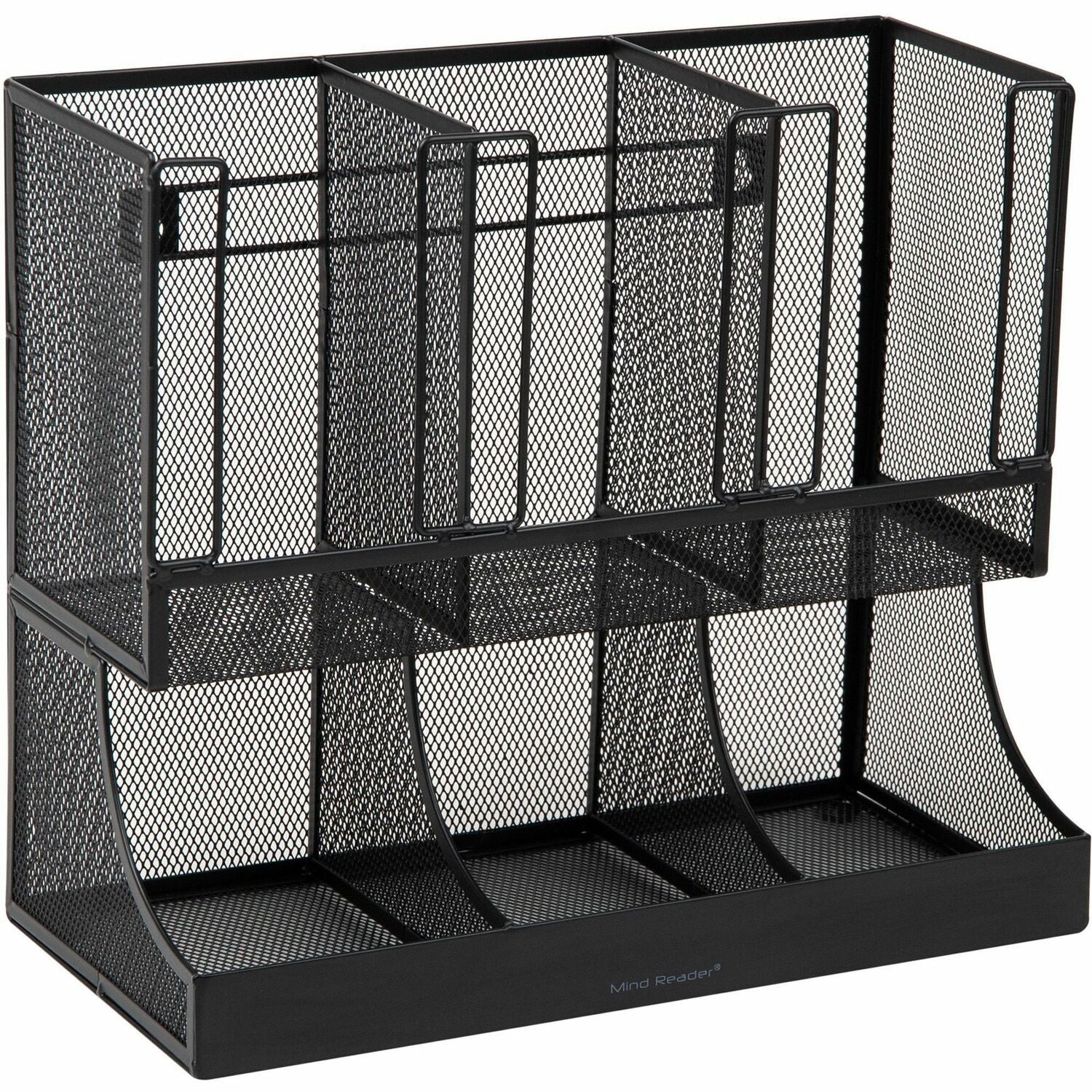 Mind Reader UPMESH 6-Compartment Coffee Condiment Organizer, 6 Compartment(s), 2 Tier(s), 11.1" Height x 12.8" Width x 6.3" Length, Black, Metal Mesh
