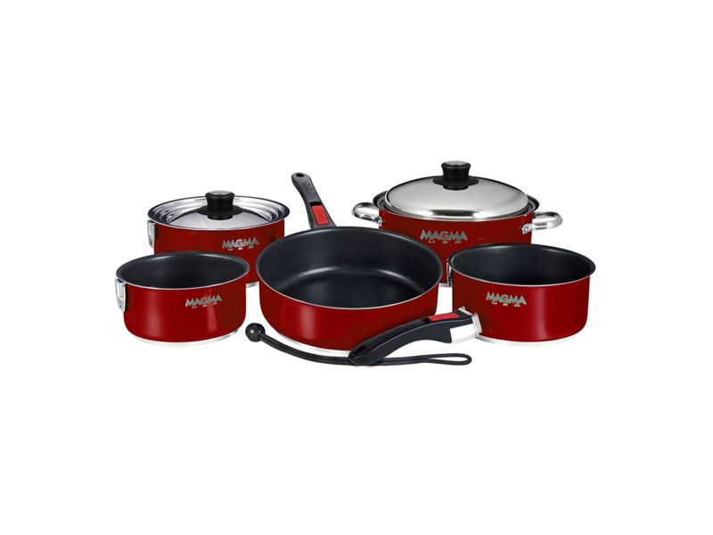 Magma Nesting 10-Piece Induction Compatible Cookware - Red Exterior & Slate Black Ceramica Non-Stick Interior A10-366MR-2-IND. 100percent stainless steel with a ferromagnetic stainless steel base for use on induction cooking systems. Nests and...  Read more