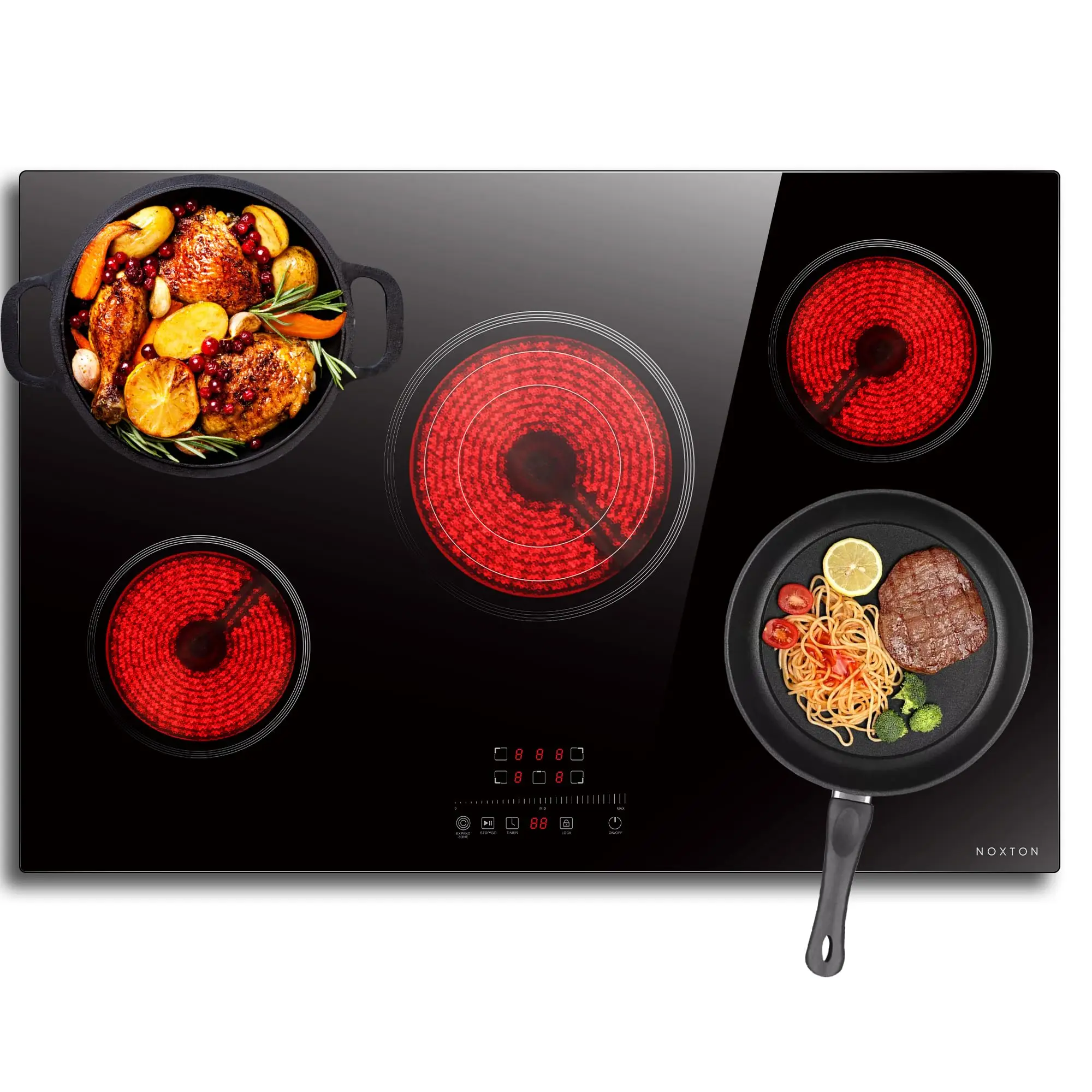 Noxton 30 Inch Electric Cooktop, 5 Burners Electric Stovetop, Built-in Glass Cooktop, Triple Ring, 220-240V Hardwire(NO plug)