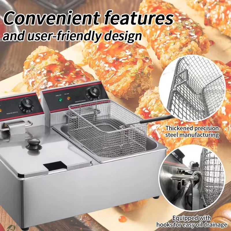 Electric Fryer Thick Stainless Steel Deep Frying Pan Single/Double Cylinder Large Capacity Fried Chicken Stove 220V
