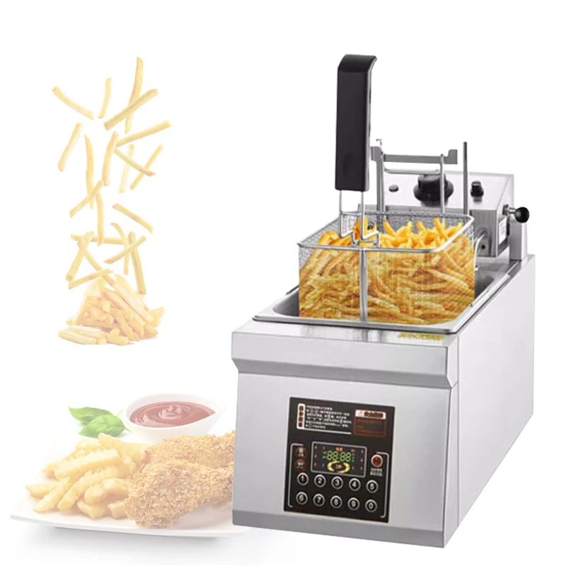 220V Electric Fryer Commercial Automatic Lifting Fryer Intelligent Single Double Cylinder Desktop Fryer Machine
