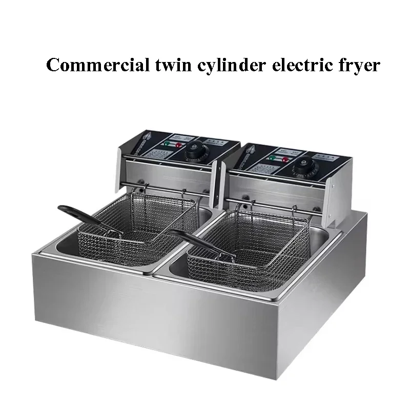 Household Double Cylinder Deep Fryer Electric French Fries Frying Machine 12L Industrial Deep Fryer