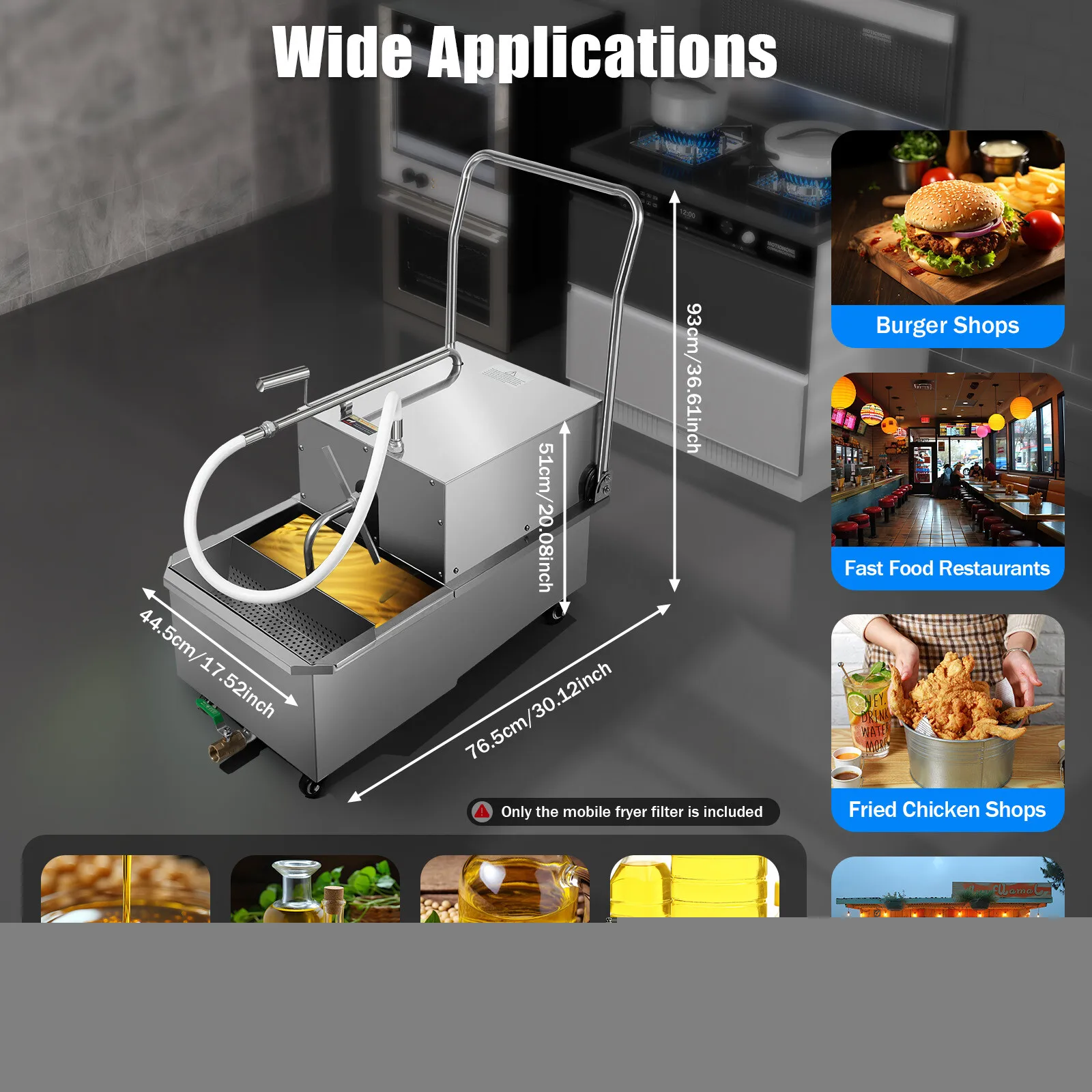 550W Mobile Fryer Oil Filter 55L Commercial Cooking Oil Filtration System Oil Temperature 60-120℃ for Filter Edible Oil
