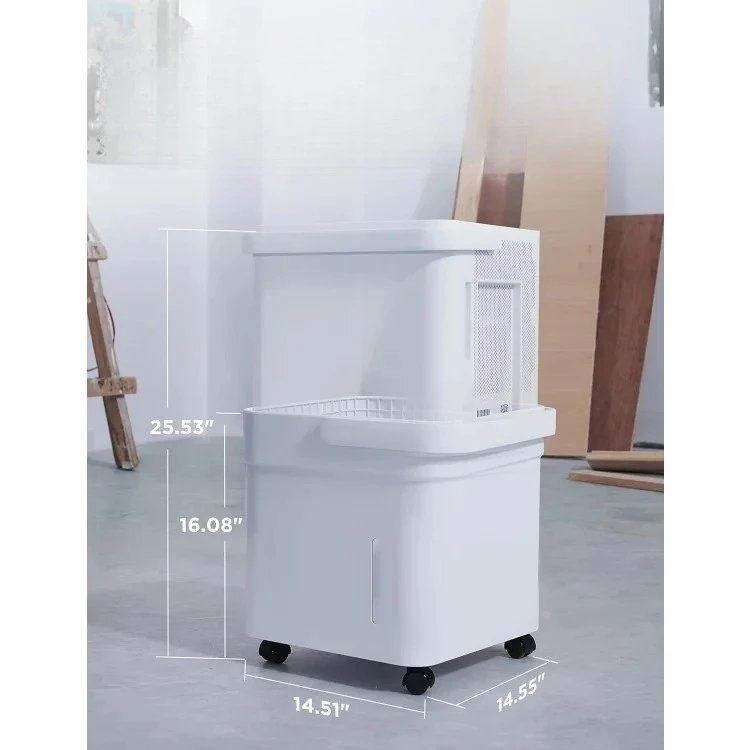 50 Pint Dehumidifier. 4, 500 Square Foot Coverage. Ideal for Large Rooms and Basements. 1.7 Gallon Bucket Capacity