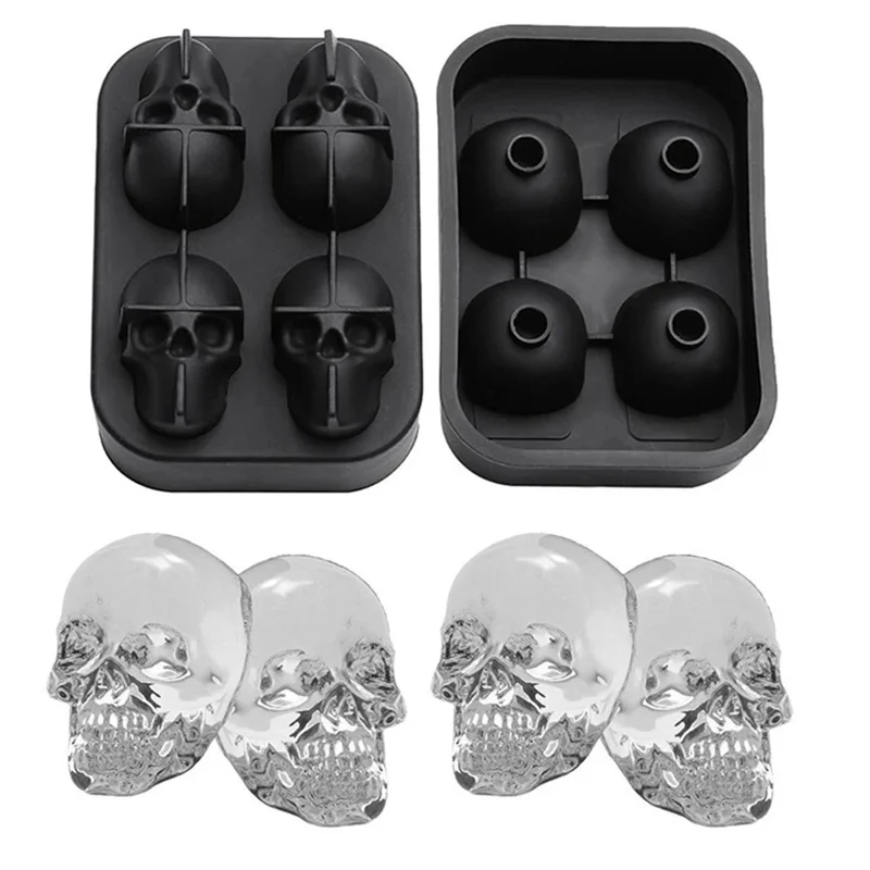 2024 New 3D Skull Ice Cube Tray With Funnel Silicone Flexible 4 Cavity Maker Molds Cube Maker Ice Cream Tools