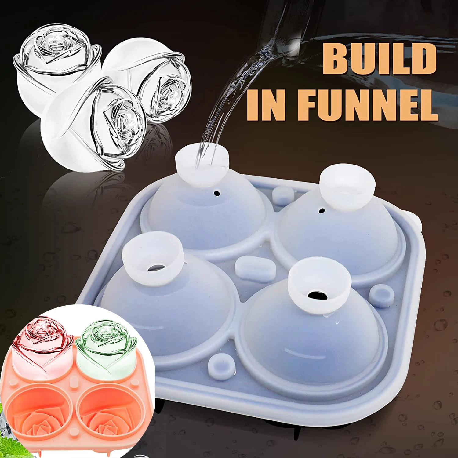 3D Rose Ice Model 2.5-inch Large Ice Cube Tray Making 4 Lovely Flower Shape Ice Silica Gel Fun Ice Hockey Maker For Whishy Mold