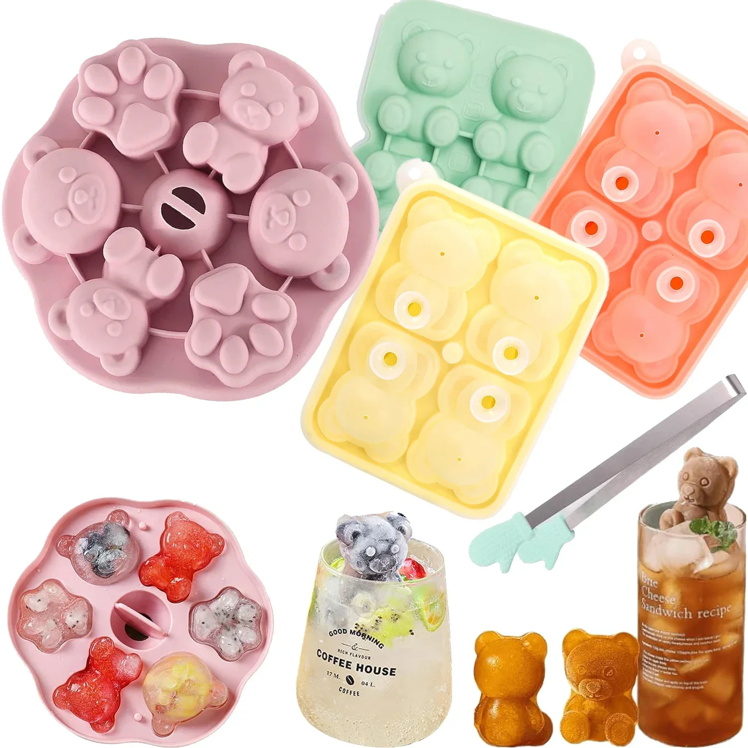 3D Little Bear Shape Ice Cube Tray Silicone Mold Silian Little Bear Block Mold Household Ice Cream Box DIY Coffee Milk Juice