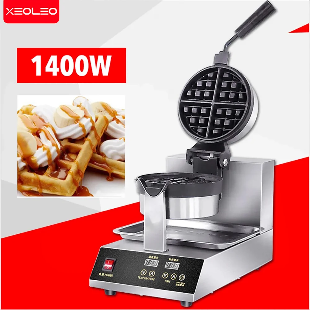 XEOLEO Electric Waffle Maker Egg Cake Machine Non-stick Waffle Machine Commercial Rotatable Round Head Baking Machine With Timer
