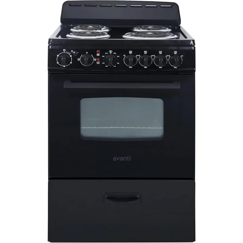 ERU240P1B Electric Range Oven Compact Design, 2.6-Cu.Ft. Capacity with 4 Coil Burners, Framed Glass Door, Storage Drawer