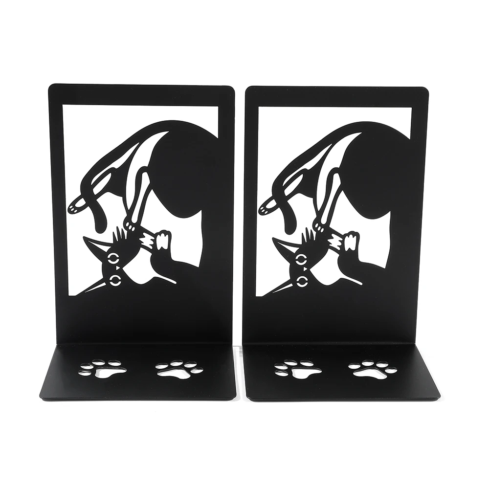 2Pcs Style Black Cat Book Ends Heavy Book Iron Bookends Gift for Book Loves Home Desk Book Rack Office Supplies Stand Iron