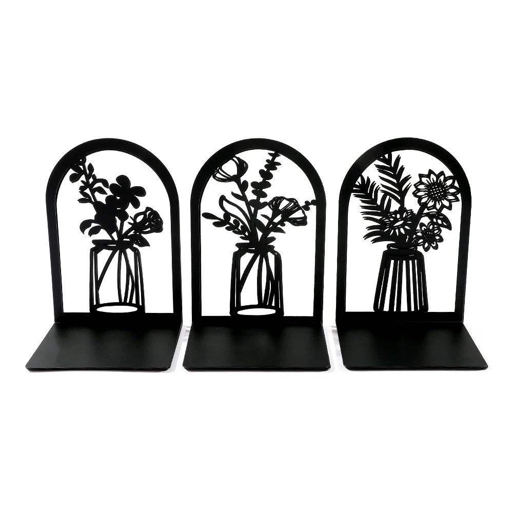 2Pcs Beautiful Vase Book Ends Home Desk Stationery Bookends Office Supplies Book Rack Stand Iron for Book Lovers Woman Man