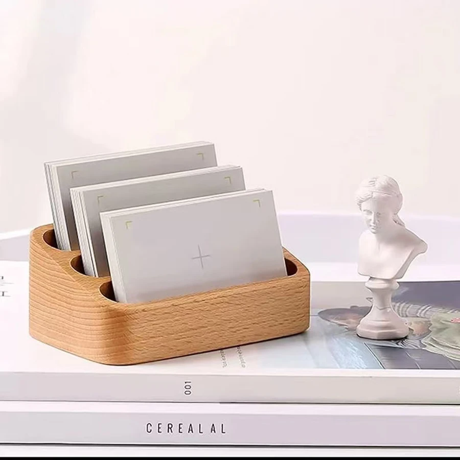 Wood Desktop Business Card Display Stand Business Card Holder Memo Holder Storage Wood Card Organizer for Office Table Organizer