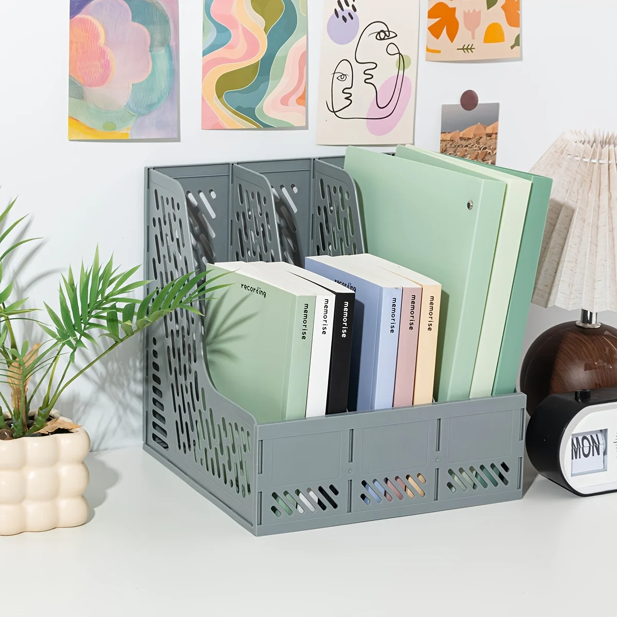 Modern Minimalist Gray Plastic Desktop Organizer - Multi-Purpose File and Magazine Storage Rack for Office Supplies Display  Read more
