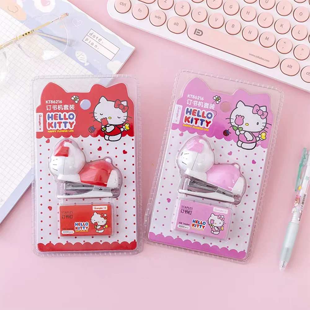Sanrio Hello Kitty Stapler Set Cartoon Kt Cat Kawaii Students Test Papers Note Mini Binding Machine Office Supplies School Prize