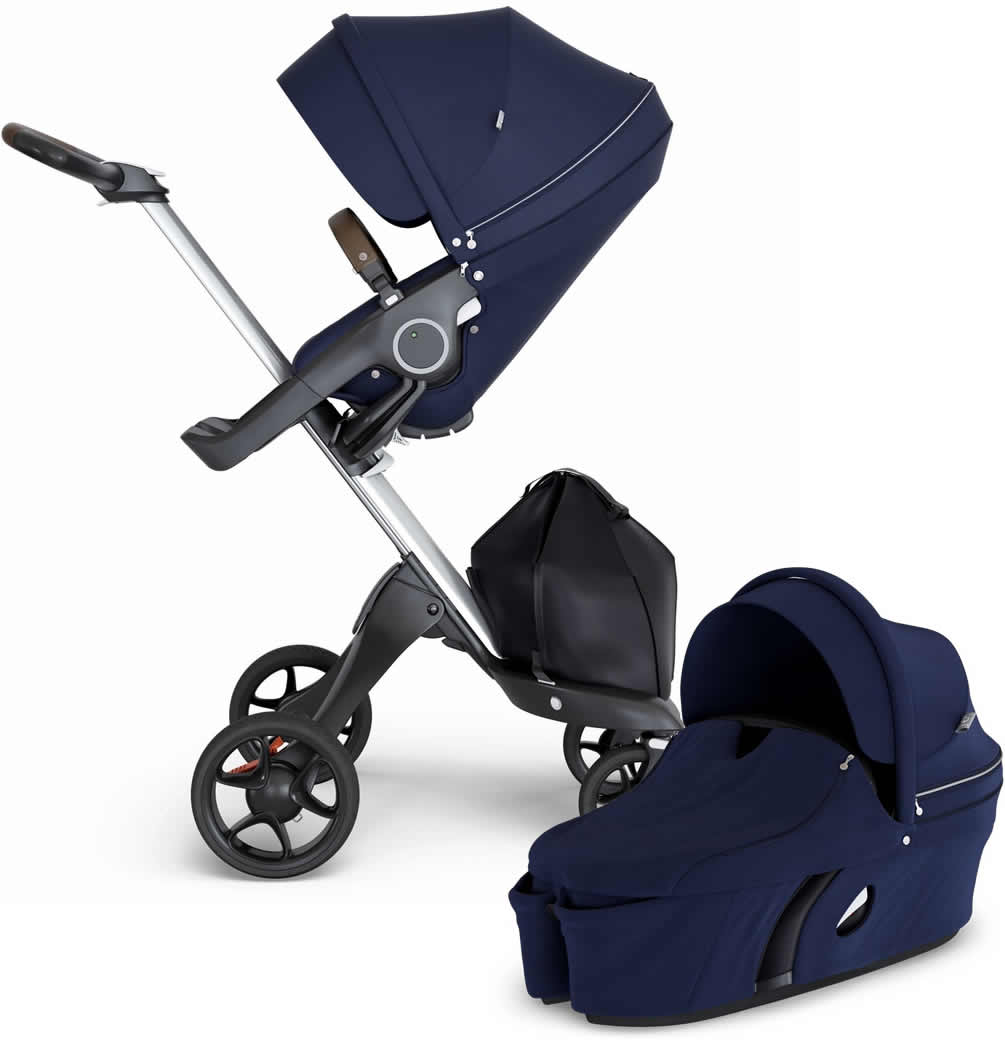 Stokke Xplory 6 Stroller & Carrycot - Deep Blue/Silver/Brown