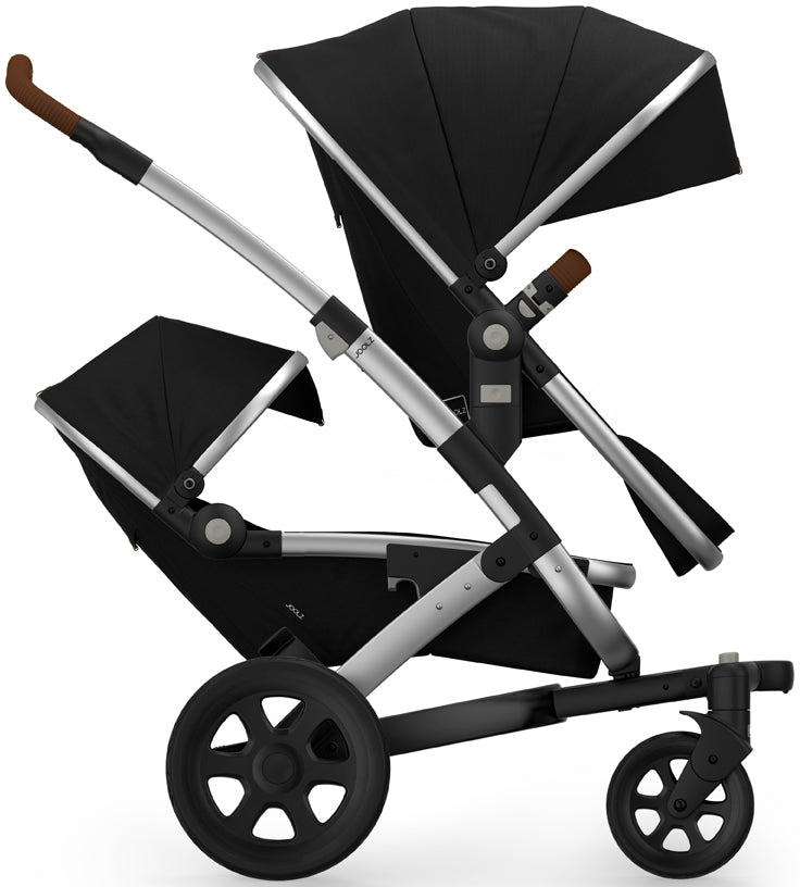 Joolz Geo 2 Tailor Twin Stroller - Black/Silver/Black/Dark Brown Ribbed