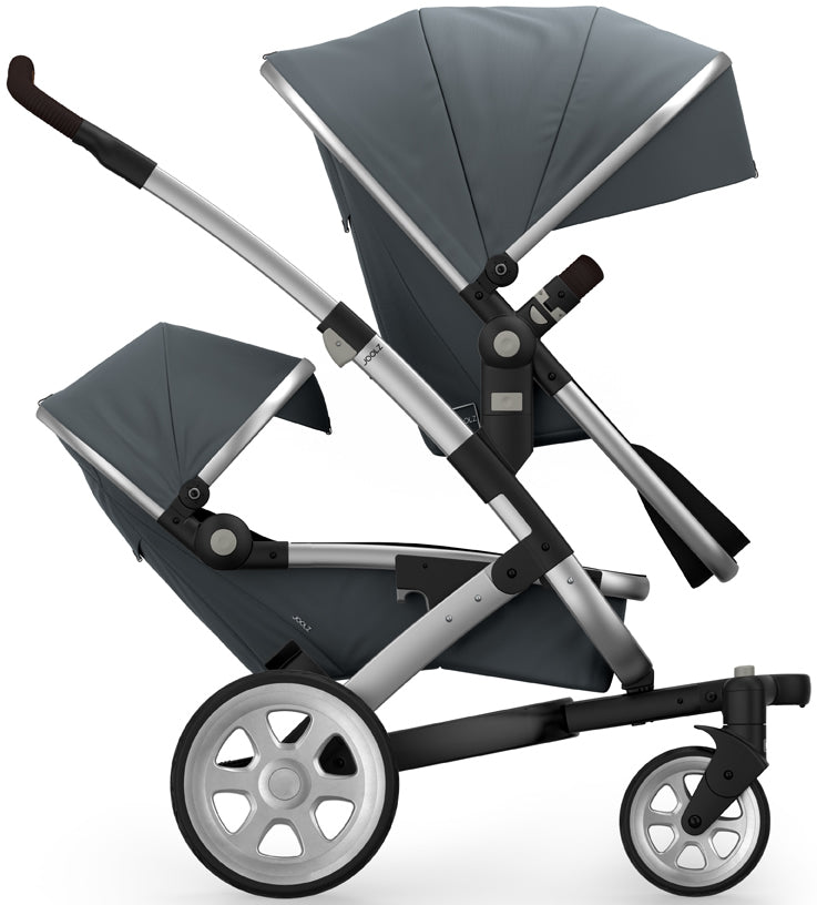 Joolz Geo 2 Tailor Twin Stroller - Silver/Grey/Silver/Dark Brown Ribbed