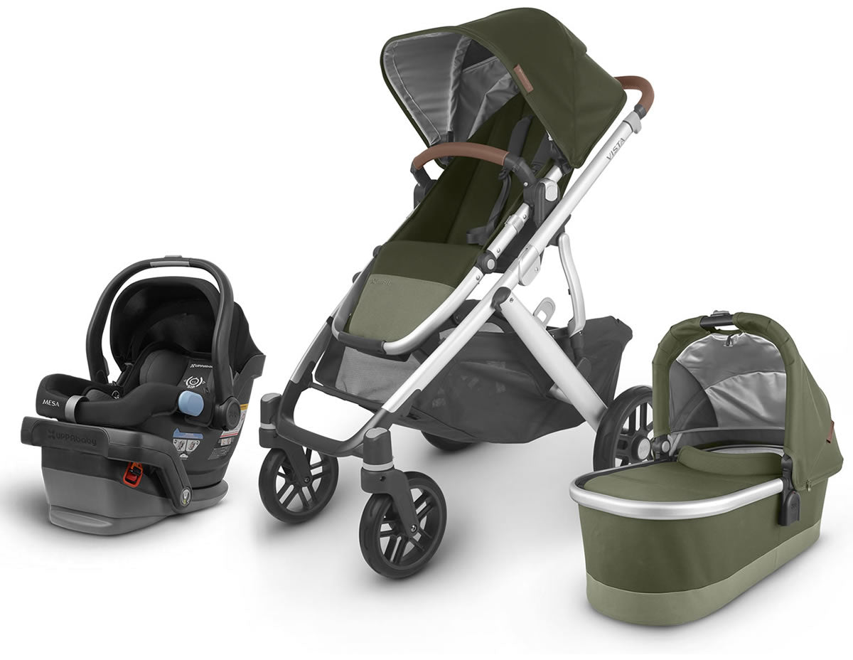 UPPAbaby VISTA V2 + MESA Travel System Bundle - Emmett (Green Melange/Silver/Saddle Leather)
