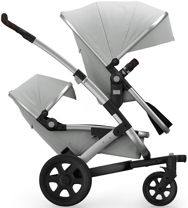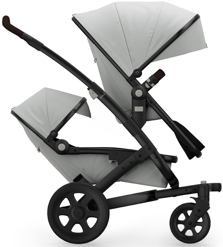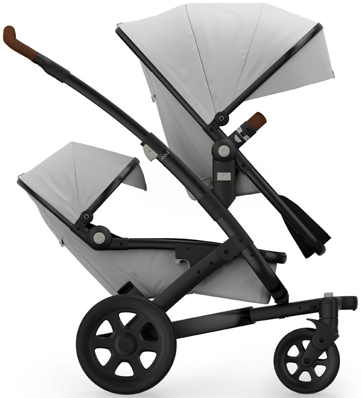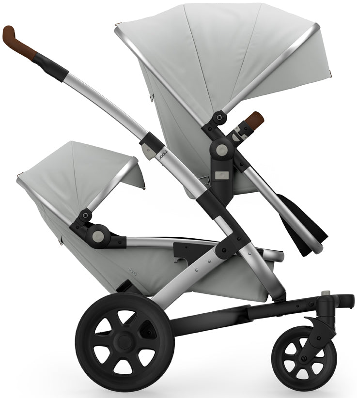 Joolz Geo 2 Tailor Twin Stroller - Silver/Grey/Black/Dark Brown Double-Stitched