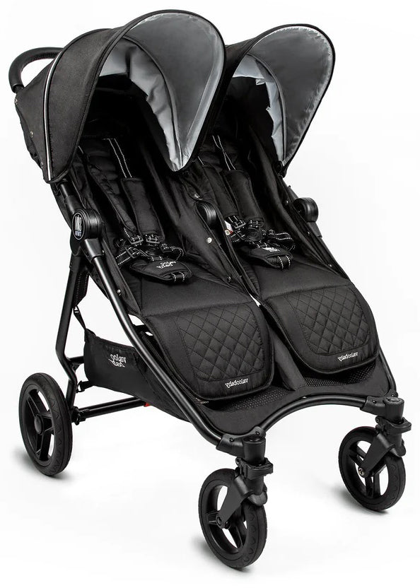 The Valco Baby Slim Twin Strolleris designed with small spaces in mind. At less then 26 inches wide, this lightweight double stroller will fit through even the smallest openings. Featuring an easy compact one hand fold, independent reclining seats, ...
