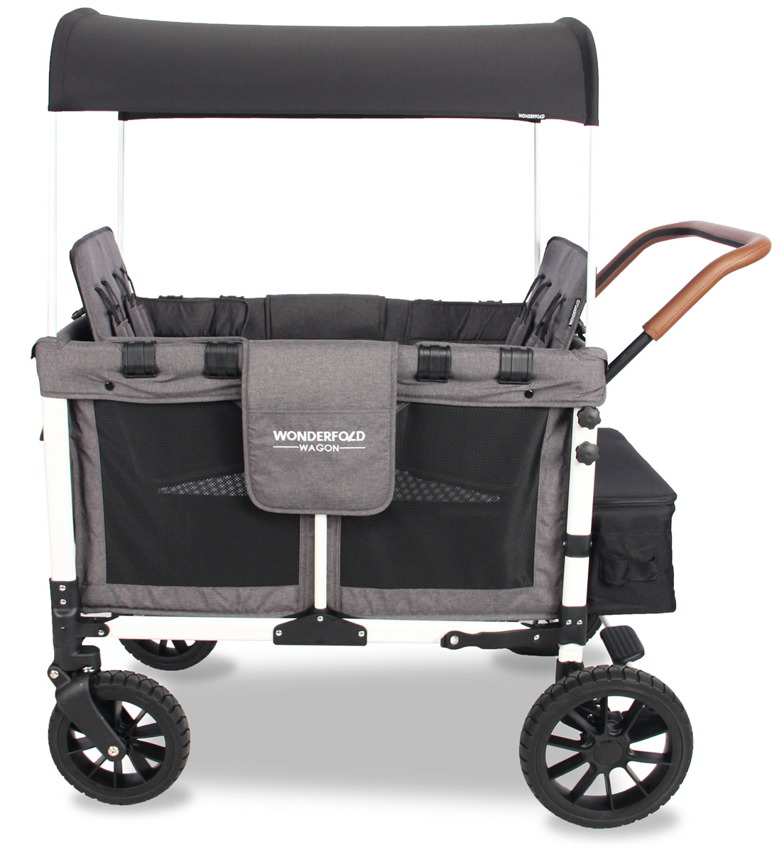 WonderFold W4 Luxe Multifunctional Quad (4 Seater) Stroller Wagon - Charcoal Gray/White Frame (Limit