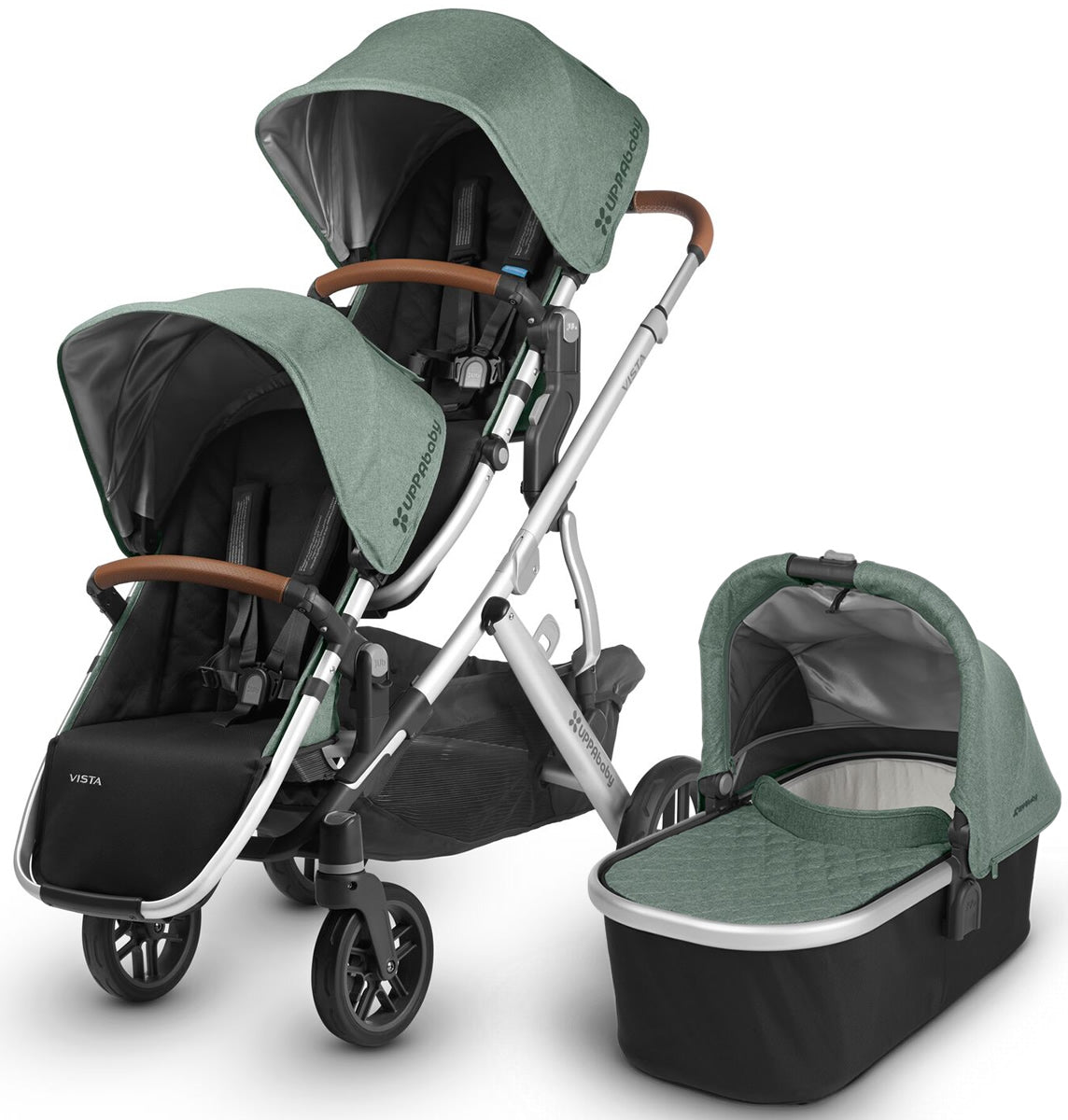 UPPAbaby 2018 / 2019 Vista Double Stroller - Emmett (Green Melange/Silver/Saddle Leather)
