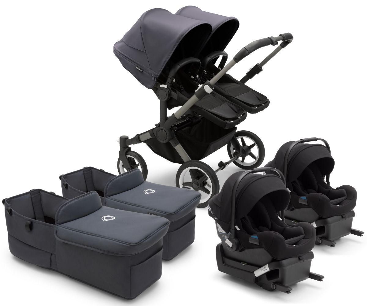 Bugaboo Donkey 5 + Turtle One Twin Travel System Bundle - Graphite / Stormy Blue / Stormy Blue / Bla