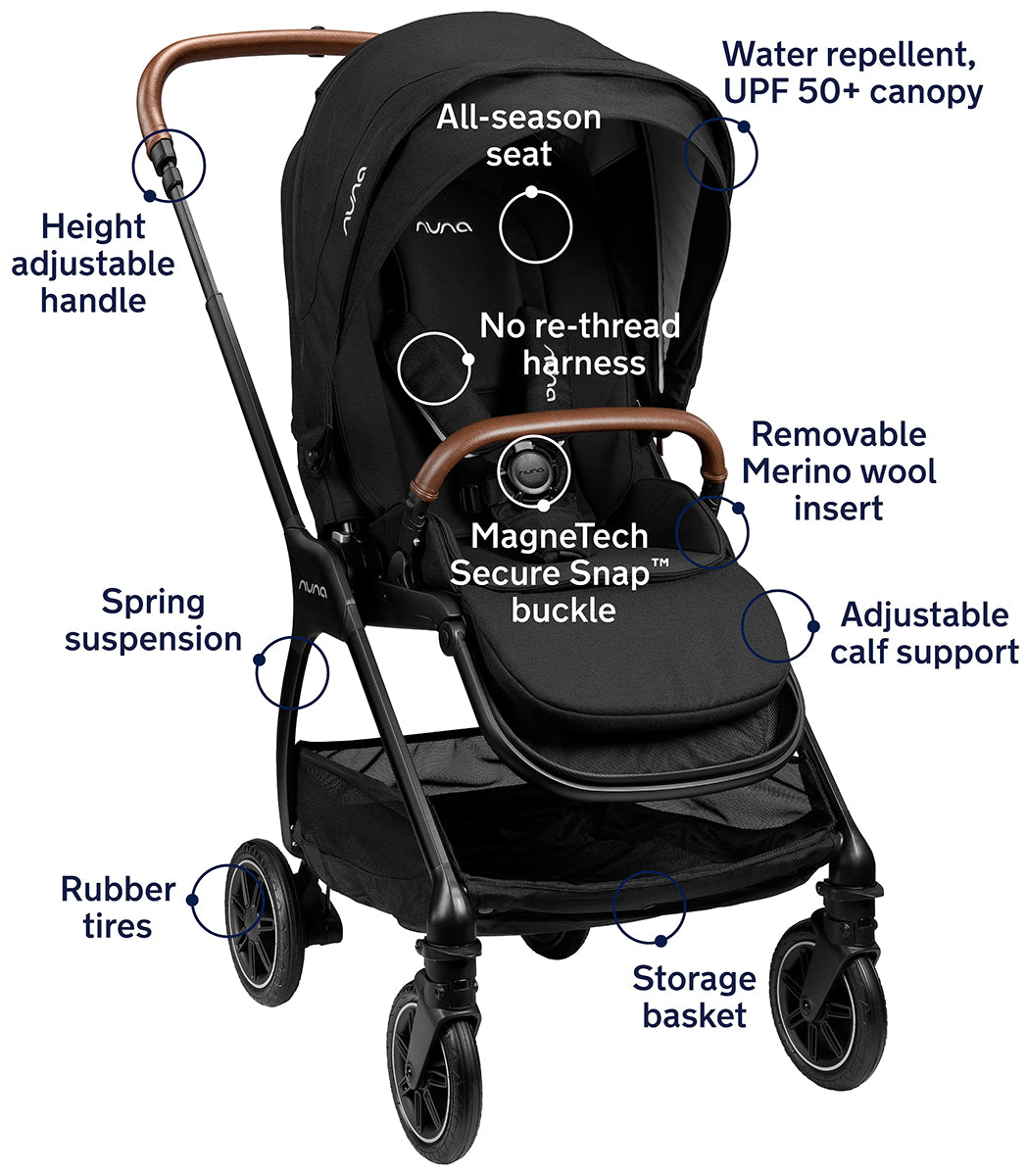 Nuna Triv Compact Stroller with Magnetic Buckle + Triv Bassinet - Caviar