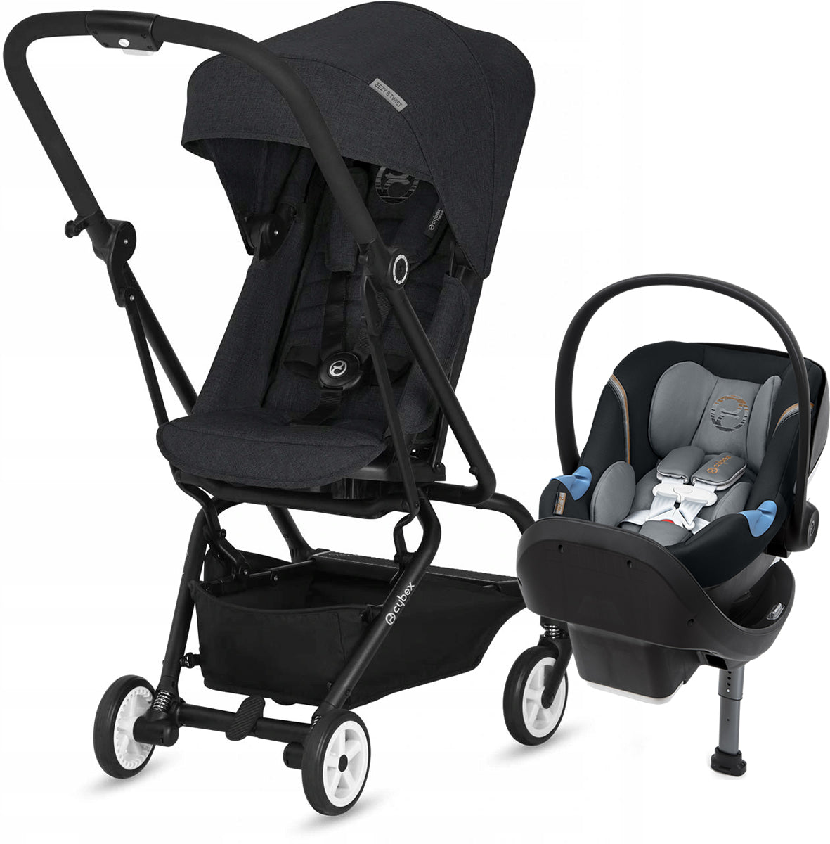 Cybex Eezy S Twist + Aton 2 SensorSafe Travel System - Lavastone Black/Pepper Black