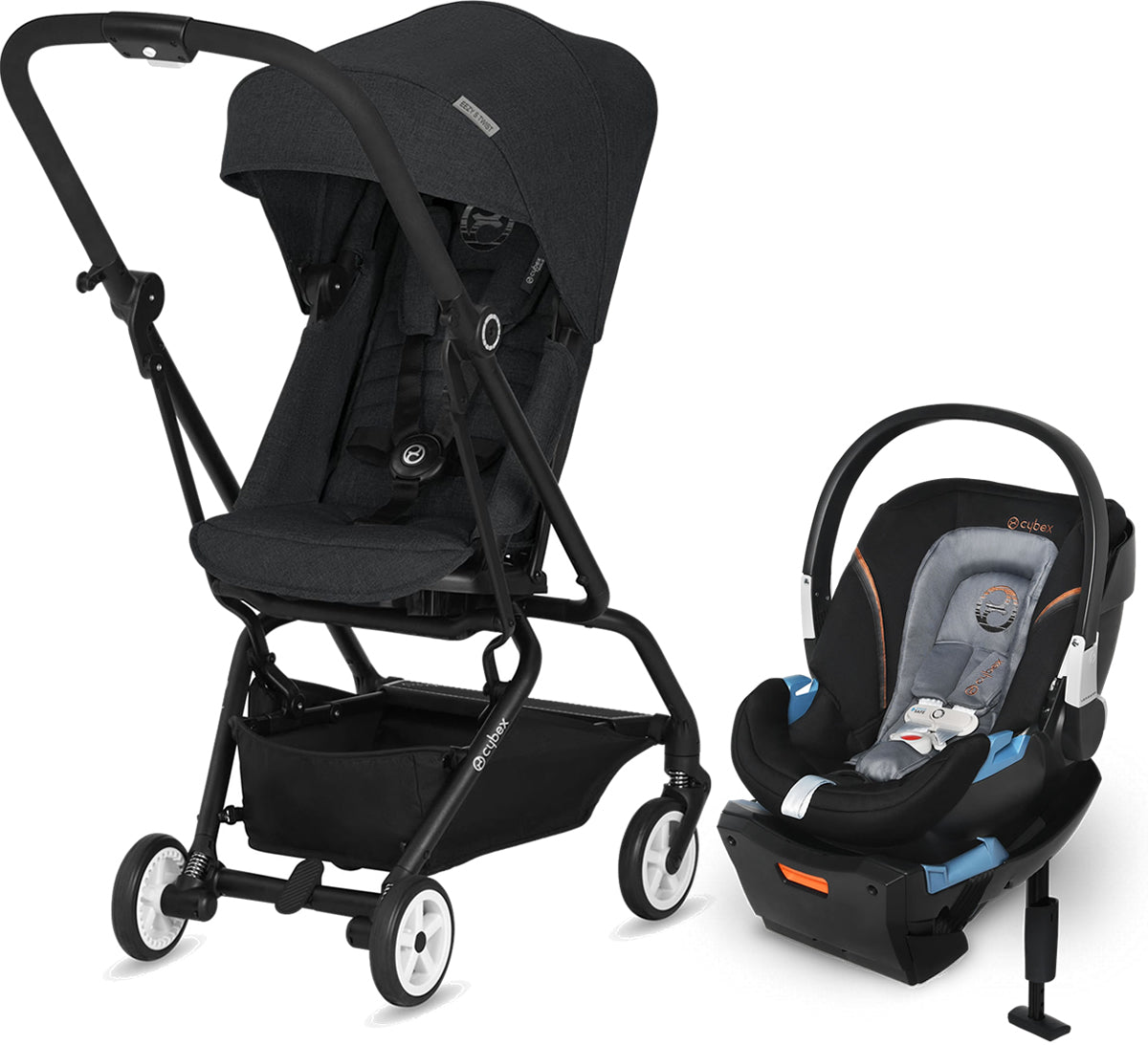 Cybex Libelle Compact Stroller + Aton 2 SensorSafe Travel System Bundle - Deep Black / Lavastone Bla