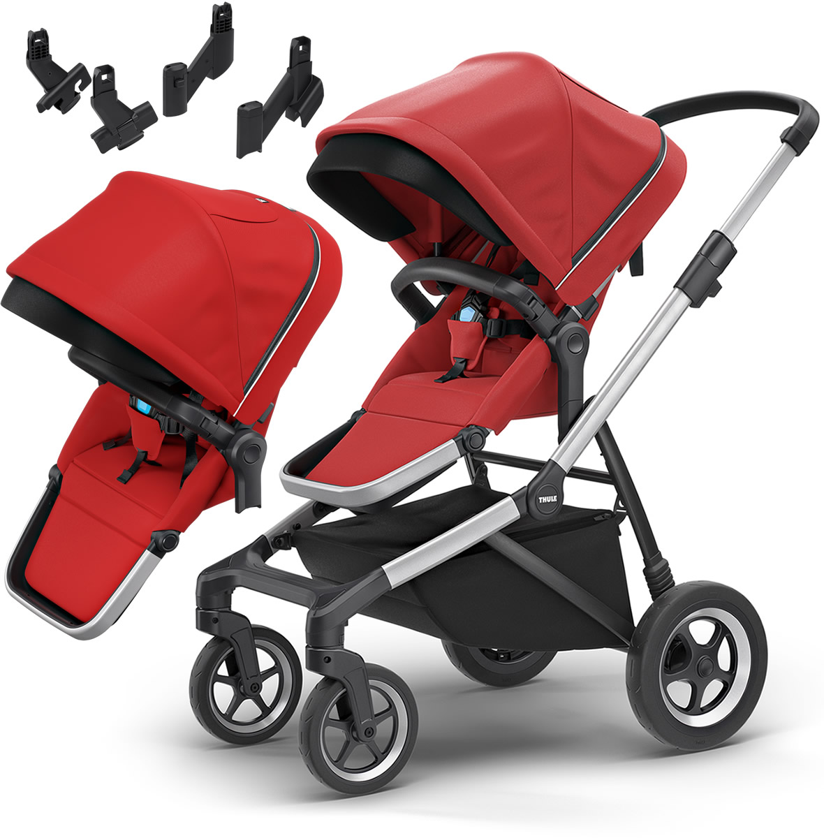 Thule Sleek Single-to-Double Stroller & Bassinet - Energy Red