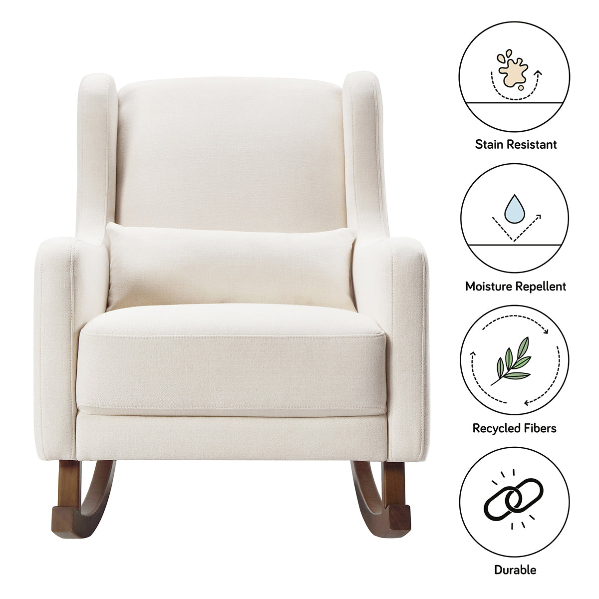 A beautifully crafted waterfall skirt softens the track arm silhouette of Crawford Glider. The plush pillow back cushion brings nursery comfort to a new level along with a lumbar pillow and wide seat. Its smooth, back-and-forth gliding motion helps...