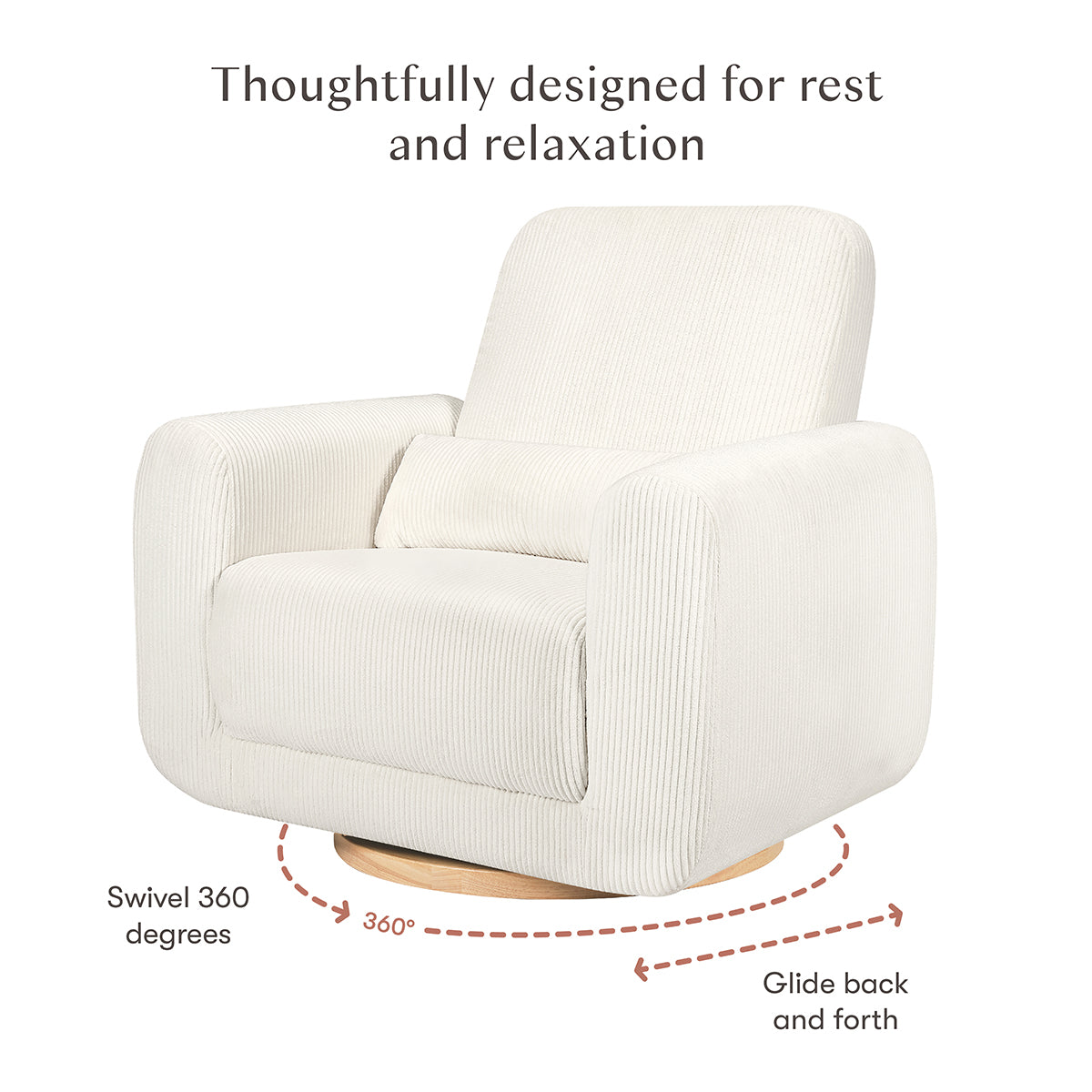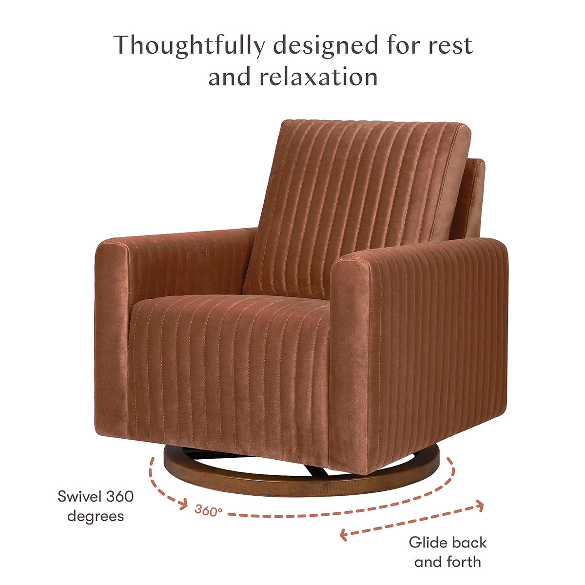 Meet the Poe Channeled Swivel Glider - a perfect blend of comfort, support, and mid-century modern sophistication. Its signature channel tufting invites you to sink into a plush seat while effortlessly rocking your babe to sleep with its smooth...