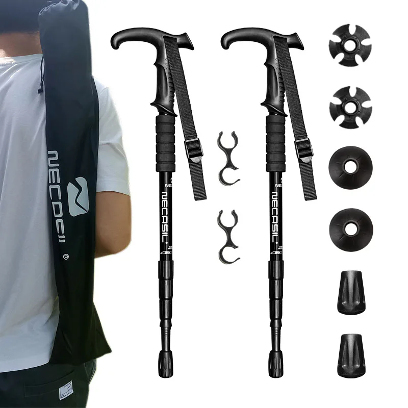 T-shaped handle hiking stick, ultra light and adjustable four section crank cane with internal lock shock-absorbing hiking stick  Read more
