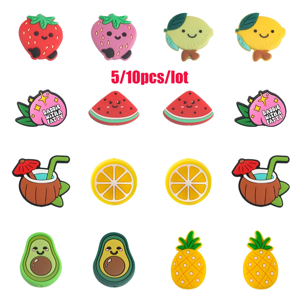 5/10pcs Silicone Beads Strawberry Watermelon Pineapple Fruit Focal Bead DIY Pacifier Chain Bracelets For Jewelry Making