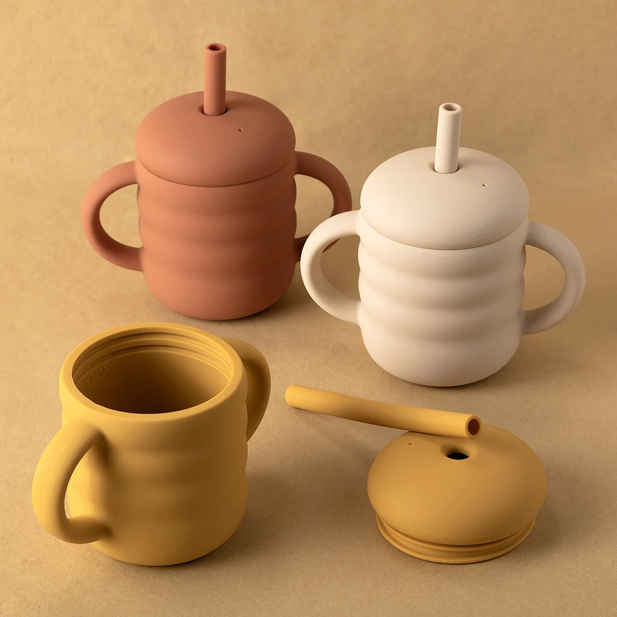 Baby Silicone Cups Straw Thread Cup BPA-Free Portable Storage Snack Container Feeding Cup For Kids Leakproof Learning Drink Cup