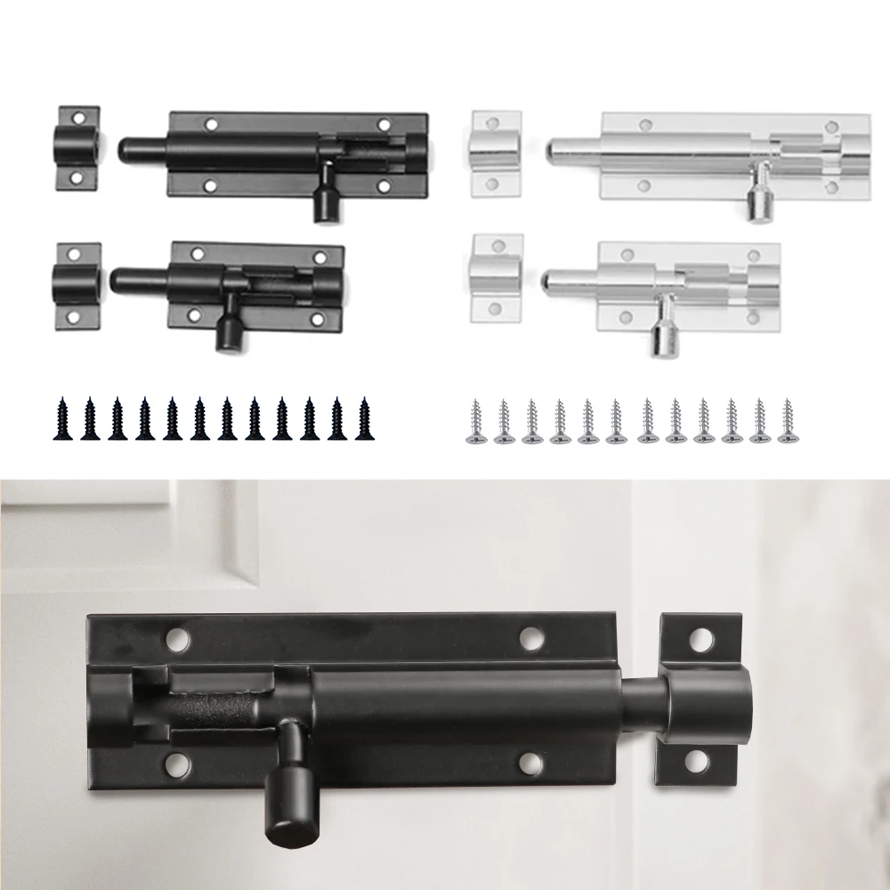 Black Door Lock Barrel Aluminum Alloy Door Lock Latch for Home Hardware Gate Safety Door Bolt Tower Window Catch Lock Silver