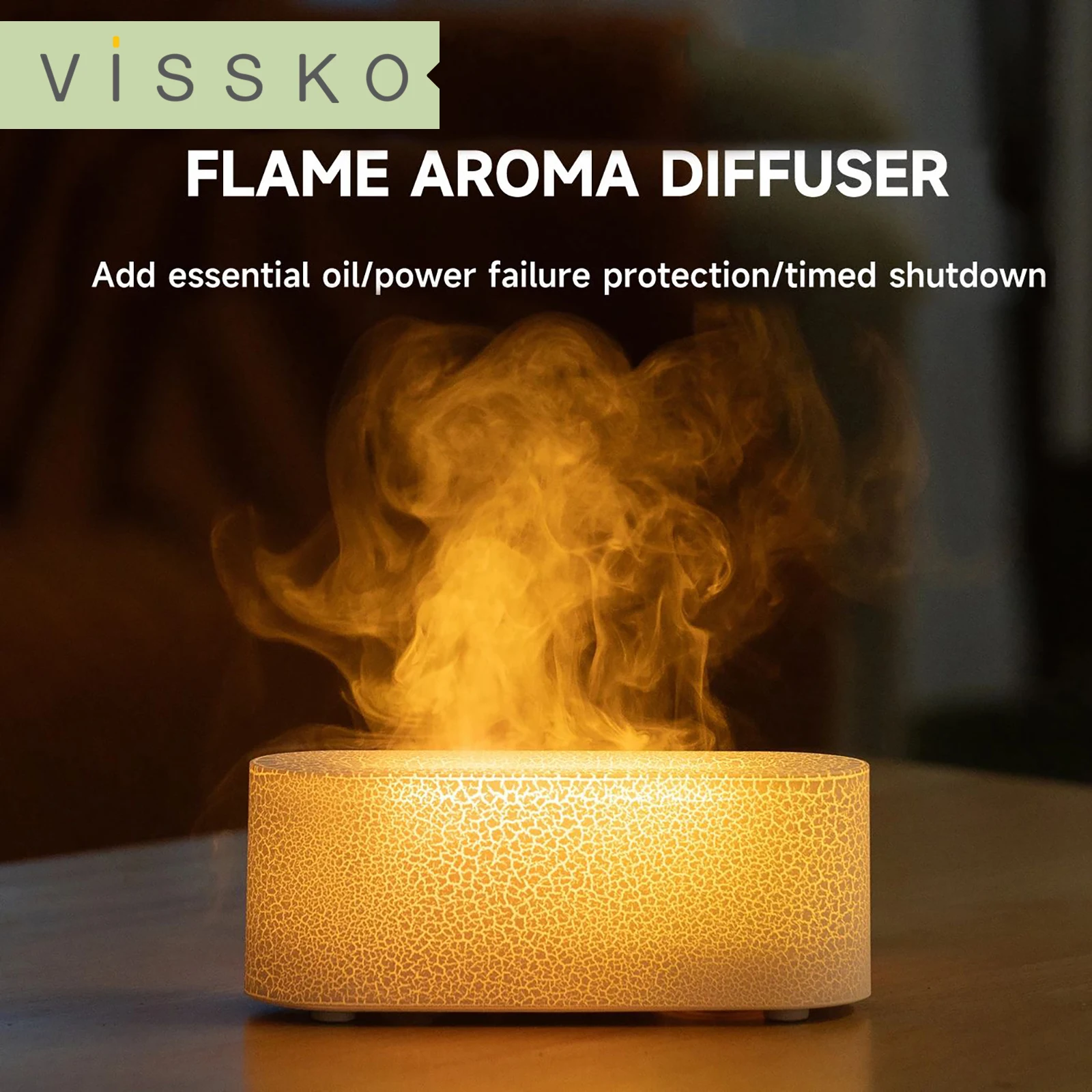 Vissko Flame Aroma Diffuser RGB Air Humidifier Ultrasonic Cool Mist Maker Fogger LED Essential Oil Fire LED Lamp Difusor Gift