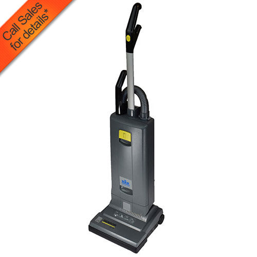 Wide path (16”) TRADITION™ upright designed with a chrome hood for added durability in the toughest environments. Lowers cost of ownership with a 2, 000 hour motor, shake out bag and chrome brushroll with replaceable bristle strips. Quick Kleen™ fan...